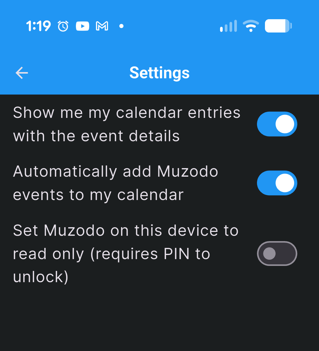 Note: This requires giving Muzodo permission to access your calendar. Rest assured we only use this access to add, update and delete events created by Muzodo.