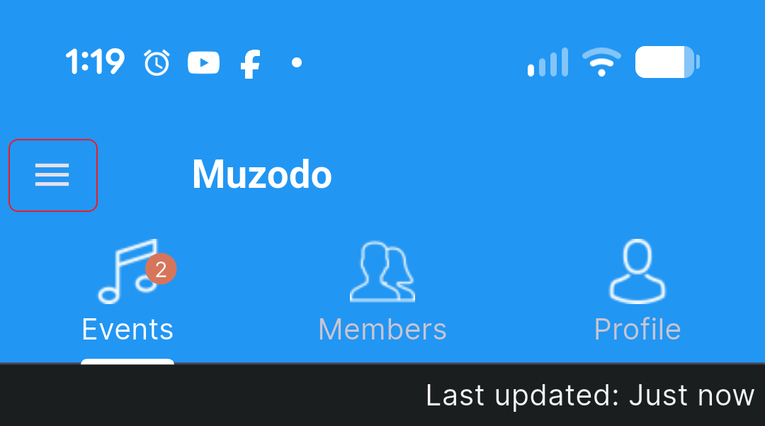 Once you've logged into the app, open the menu (3 lines on the top left) and choose Settings.